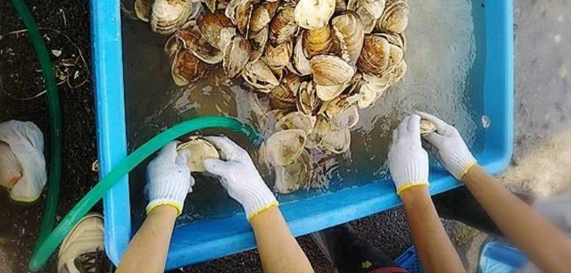 北寄贝贝壳全部由人工细致清洗,将贝壳表面污渍去除干净。