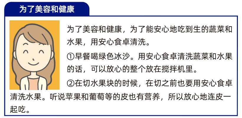 如果您使用安心食卓,您可以对超市购买的蔬菜、水果、肉类、海鲜等食品进行彻底消毒。